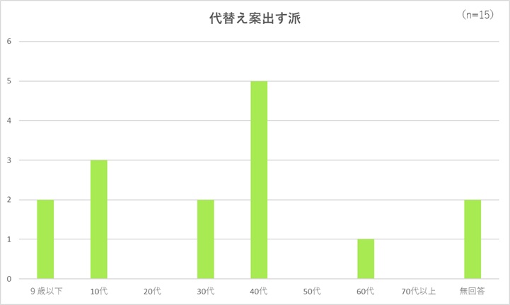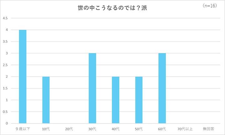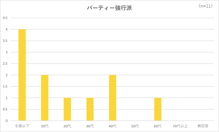 ・脱法酒があったように脱法パーティーをします。表立って活動ができないなら、裏から、少しずつ、力をためて、政を交退陣させる期をねらいたい(0~60代・無回答)