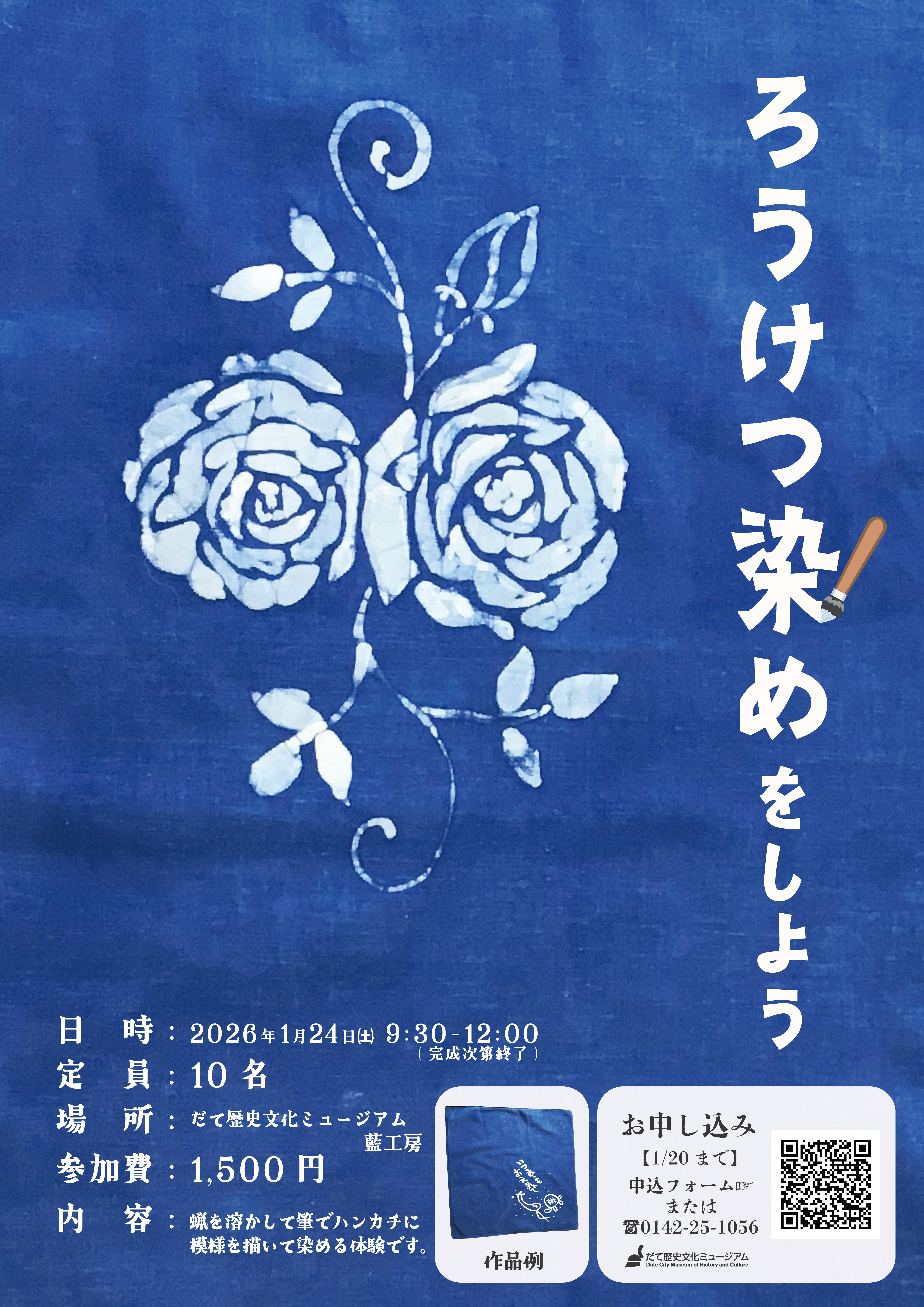下記日程にて、藍染ワークショップ 「ろうけつ染めをしよう」を開催します