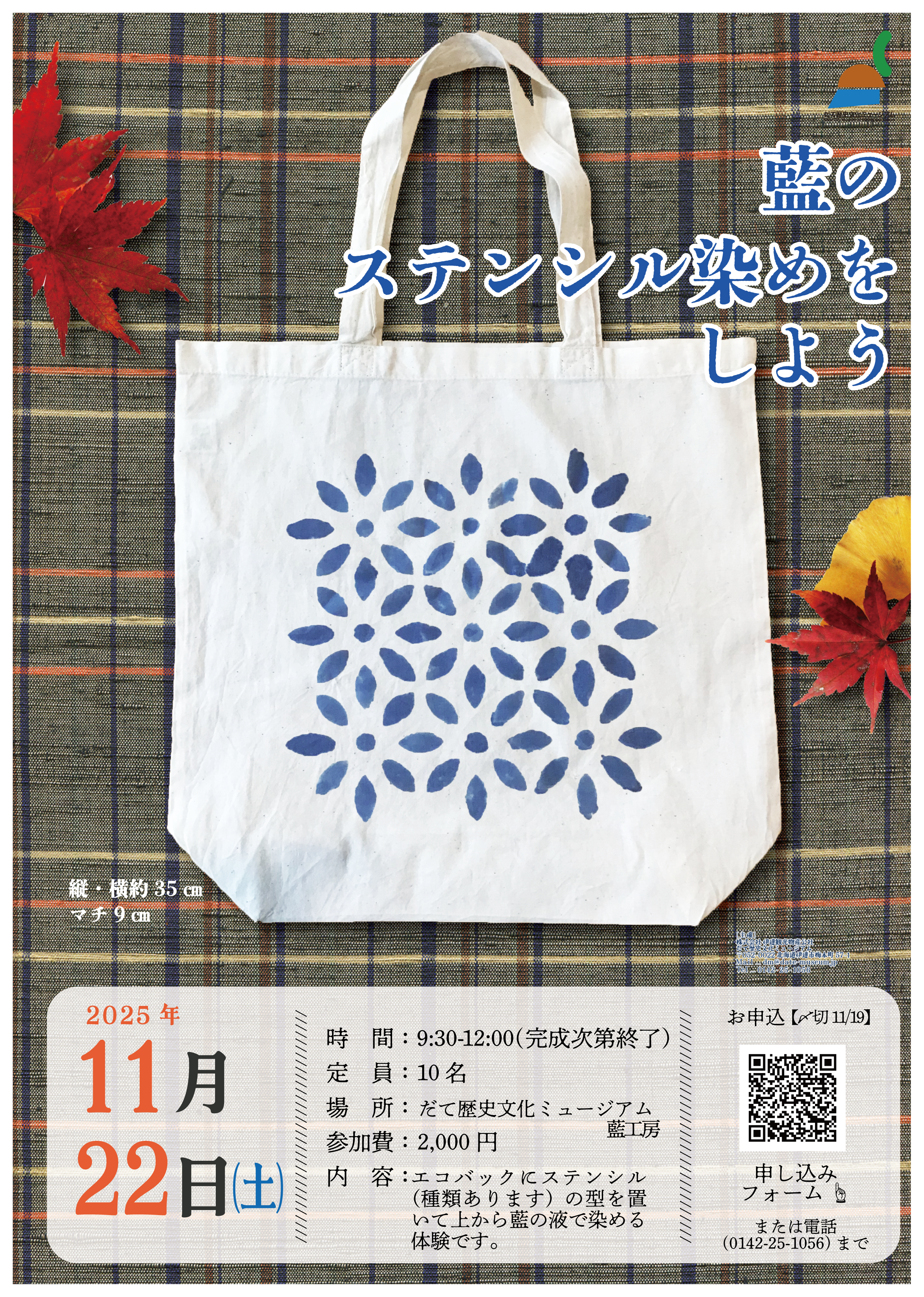 下記日程にて、藍染ワークショップ 「藍のステンシル染めをしよう」を開催します